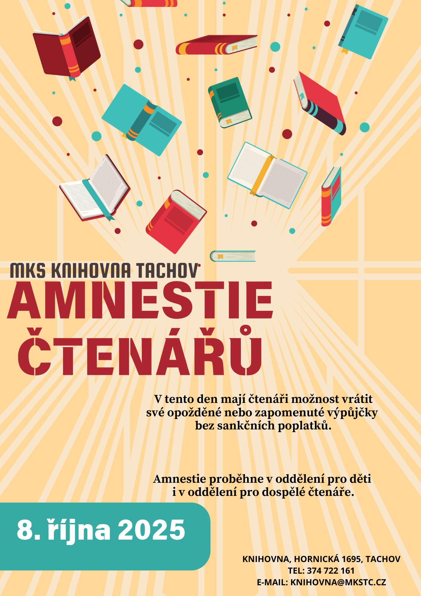 V tento den 8. října 2025 mají čtenáři možnost vrátit své opožděné nebo zapomenuté výpůjčky bez sankčních poplatků. Amnestie proběhne v oddělení pro děti i v oddělení pro dospělé čtenáře.