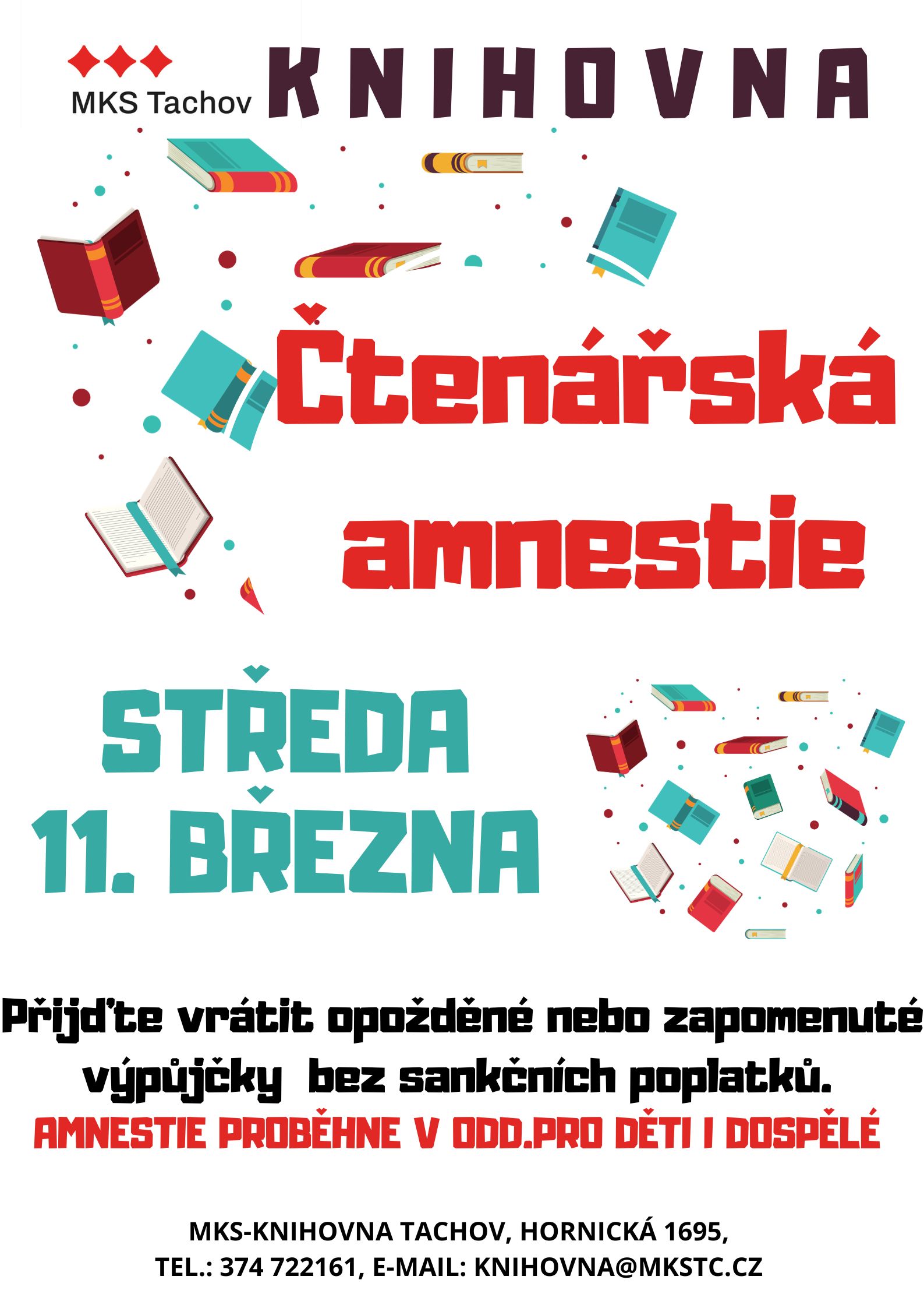 Zapomenuté výpůjčky? Vraťte je bez pokuty! V tento den odpouštíme sankční poplatky v oddělení pro děti i dospělé.