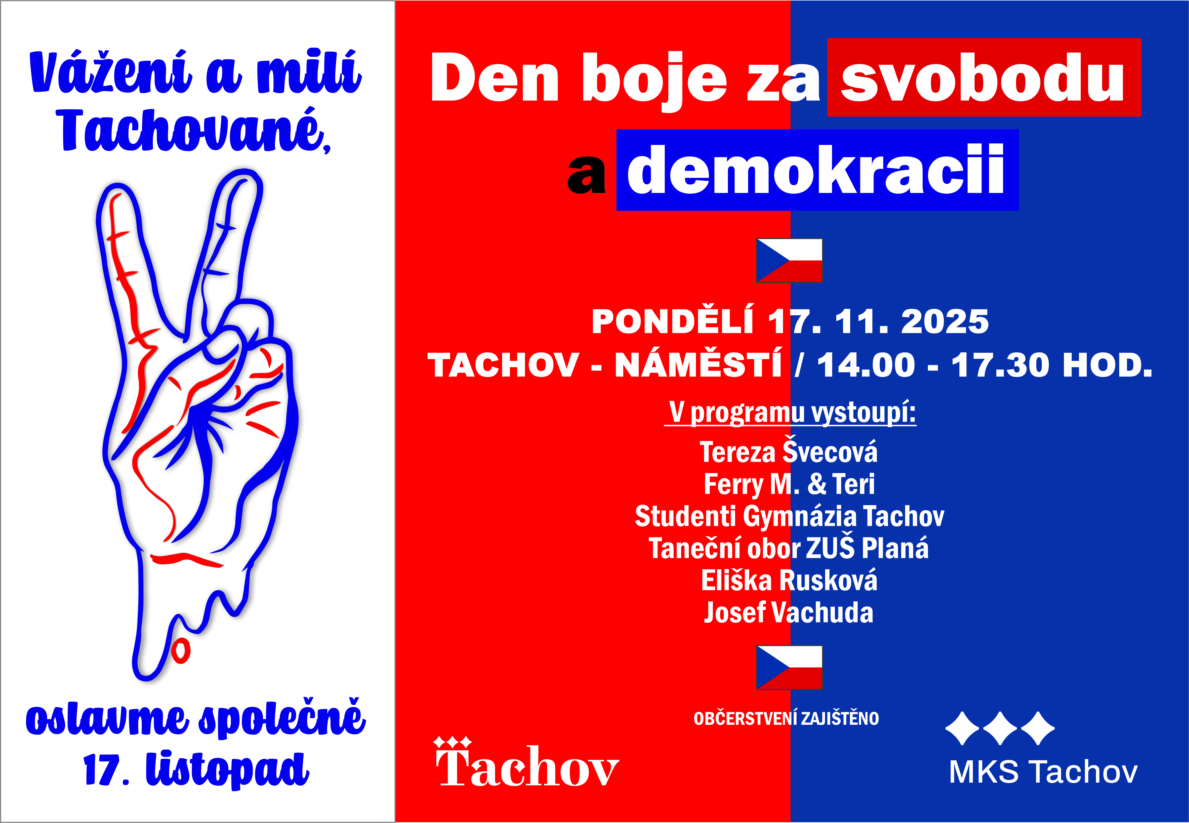 V programu vystoupí zpěvačka Tereza Švecová, duo Ferry & Teri, zpěvačka Eliška Rusková, studenti Gymnázia Tachov, taneční obor ZUŠ Planá a písničkář Josef Vachuda.
